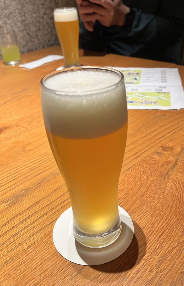 セットのホワイトエールは、クラフトビールのような爽やかな飲み口で、歩き疲れた体に染み渡ります。