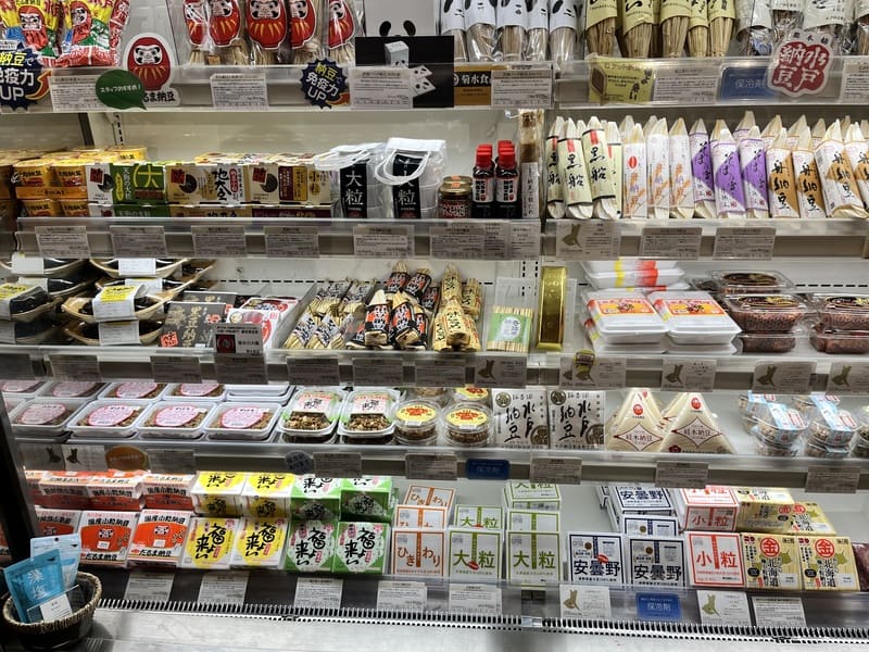 BさんとCさんは、茨城名物の納豆御膳を注文し、2種類の納豆を食べ比べていました。