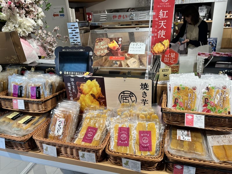 くまモングッズも充実しており、くまモンの可愛さに思わず手が伸びそうになりながらも、まずはその場でおやつに「いきなり団子」をひとつだけ購入しました。
